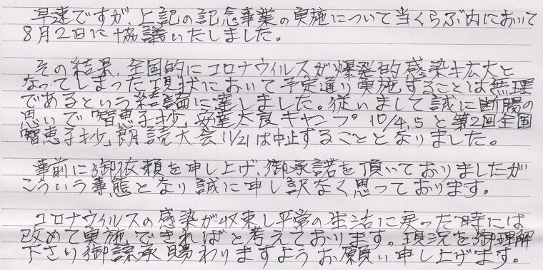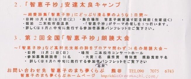 その関係で、智恵子の故郷・福島二本松で、智恵子顕彰活動に当たられている「智恵子のまち夢くらぶ」さんが、様々なイベントを計画していましたが、やはりコロナ禍収束せずということで、そのうちの2つを中止するという連絡が届きました。