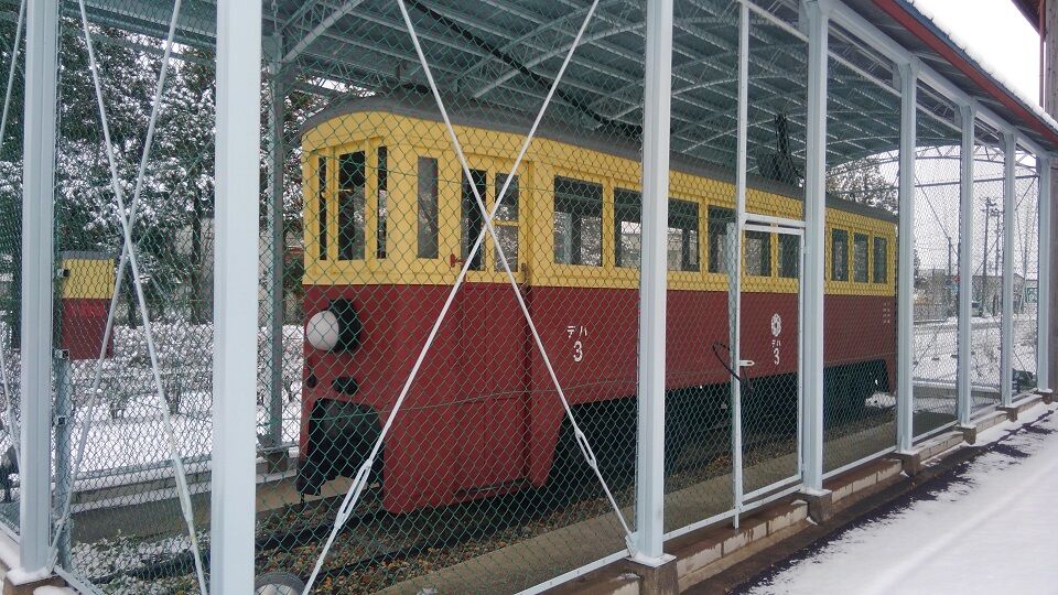 敷地内には、光太郎も乗った花巻電鉄デハ3型。