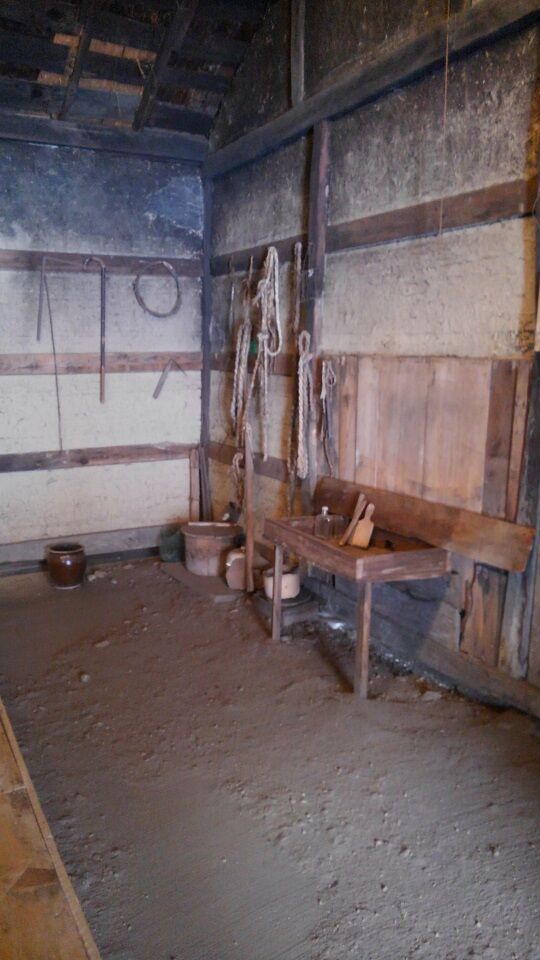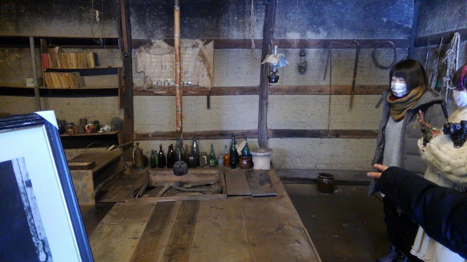 これでもまだ雪が少ない状態です。来月には1メートル以上積もるでしょう。そうなるとここに近づけません。中尊寺金色堂のように、二重の套屋(カバーの建物)の中に、山小屋が保存されています。通常非公開ですが、久しぶりに山小屋内部に入れてもらいました。この季節に中に入ったのは初めてかもしれません。