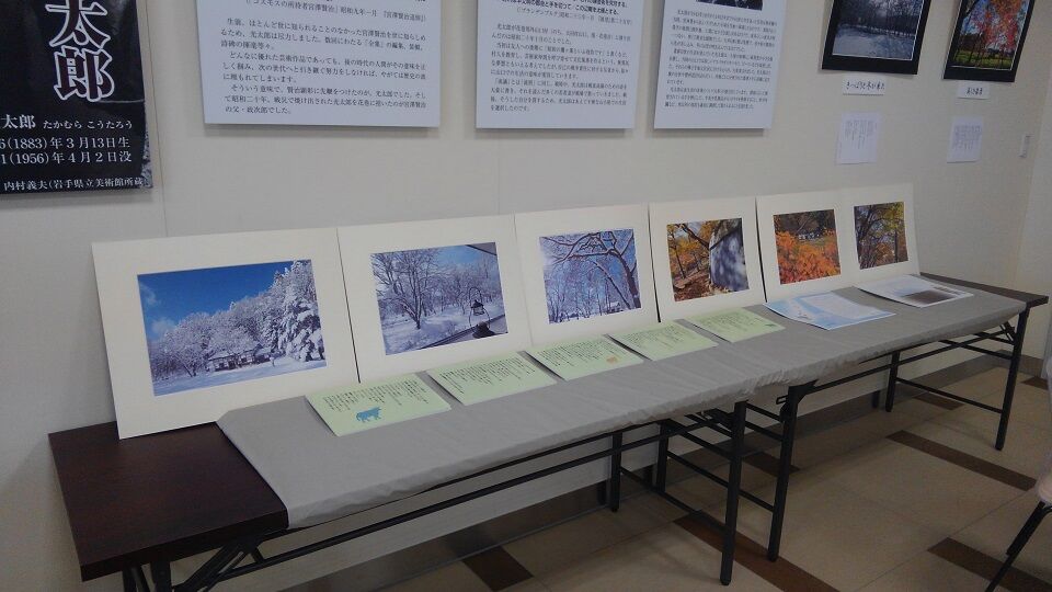こちらで、企画展「光太郎の三陸廻り」の際にお貸ししていた鳥瞰図や古絵葉書などを返していただき、ありがたいことにその分のギャラが出て、拝受。さらに事務的な相談を少々。その間に友人達には展示を見て貰いました。