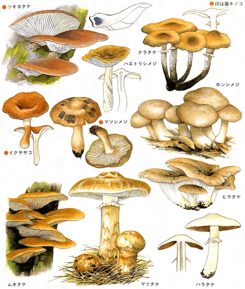 「蠅とり茸」は「ハエトリシメジ」。その名の通り、このキノコをなめたハエが死ぬ(実際には仮死状態になる)という特性があるそうです。ところが食用として料理に使われ、味もよいとのこと。ただし、やはり大量に摂取すると人体にも毒だそうです。