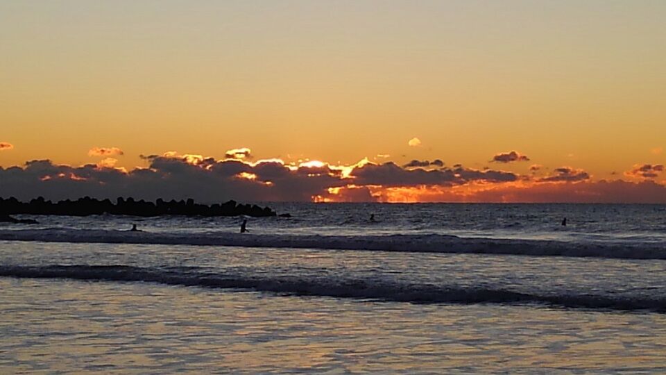 サーファーの皆さんが、既に波乗り初め。