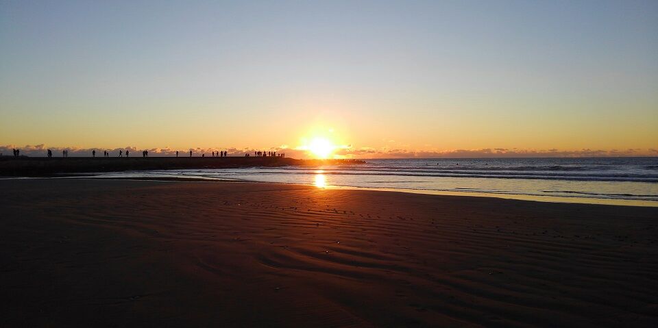 九十九里町には巨大防潮堤が出来てしまい、波打ち際の辺りはそうでもないのですが、どうも風情に欠ける感じになってしまいましたし、遠方からも初日の出を見に来る皆さんが多く、密の状態に成りかねないと判断したため、今年は旭市に。