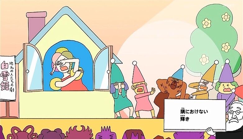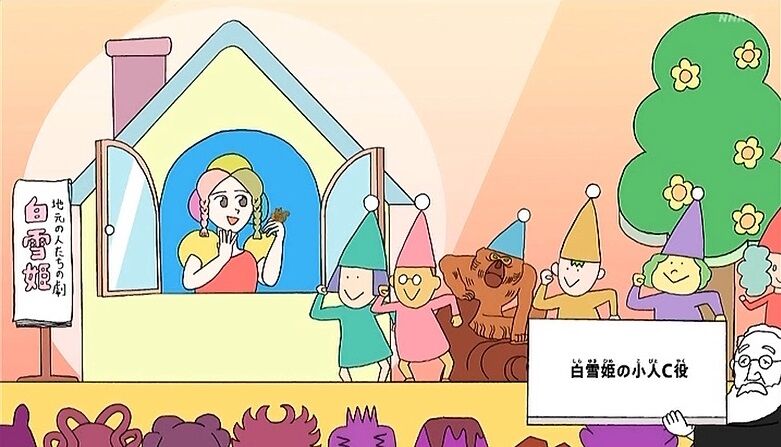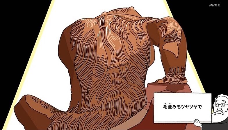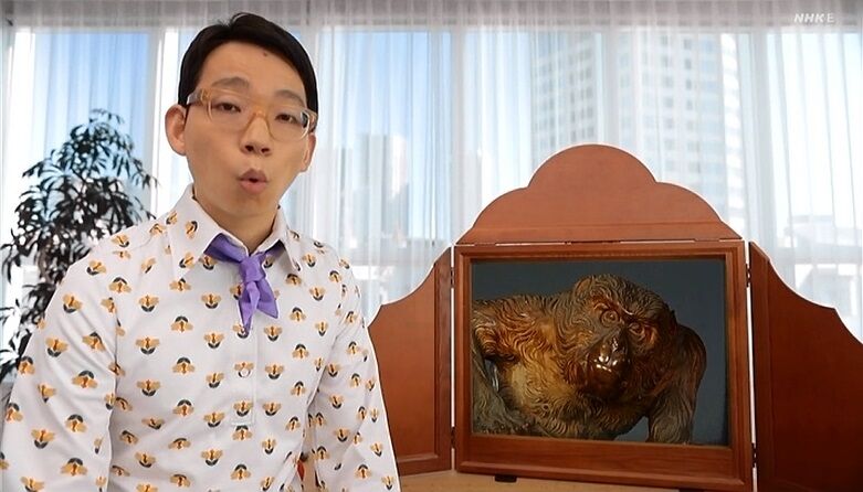 NHK Eテレ 2022年1月28日(金) 15:55〜16:00 1月31日(月) 05:50〜05:55発想の源は、高村光雲「老猿」(東京国立博物館)。この彫刻は、そのまわりだけ空気がちがうような、圧倒的な「ドラマ性」を感じさせます。もし脇役としてキャスティングされたとしても、その存在感の強さで主役を食ってしまうでしょう。「白雪姫」の小人C役、「桃太郎」のサル役…。たまたま脇役として起用されて現場のパワーバランスをおかしくさせてしまうストーリー。「老猿」と周囲とのギャップを楽しんでください。