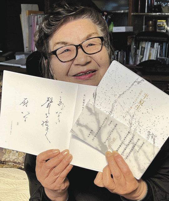 国内外で高い評価を受ける足利市在住の書家、根岸君子さん(85)が亡夫への愛情を切々とつづった詩集「半夏生(はんげしょう)−受取人のない八十歳のラブレター−」を今月、出版した。闘病、死別、その後の五年間に感じた失意、孤独、寂寥(せきりょう)の思いを飾らない言葉で紡ぐ。三年前の展覧会で詩の一部を紹介したところ、「現代の智恵子抄のよう」と圧倒的な共感を得、多数の支援者に背中を押された。 「誰(た)が為(ため)に生きるのかこの空虚(むなし)さ」「チョコレート供えて食べてと言う我に黙せし君のヴァレンタインデー」−。収録された二百五点の詩。九百点を超える作品の中から支援する編集者とともに厳選した。