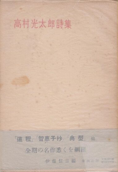 「佐野英夫氏」は新潮社の編集者。深田久弥の『日本百名山』なども手がけました。「詩集」は、翌年刊行された『高村光太郎詩集』。同社では既に昭和25年(1950)に伊藤信吉編集で新潮文庫版『高村光太郎詩集』を出していますが、それとは別に二回り大きい四六判で新たに上梓しました。こちらも伊藤信吉編です。通常、大判のものが先に出て、あとから文庫化されるものですが、この際は逆でした。それだけ需要があったということなのでしょう。