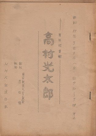 昭和37年(1962)の今日、NHKラジオ第2放送で「青年図書館 高村光太郎」が放送されました。