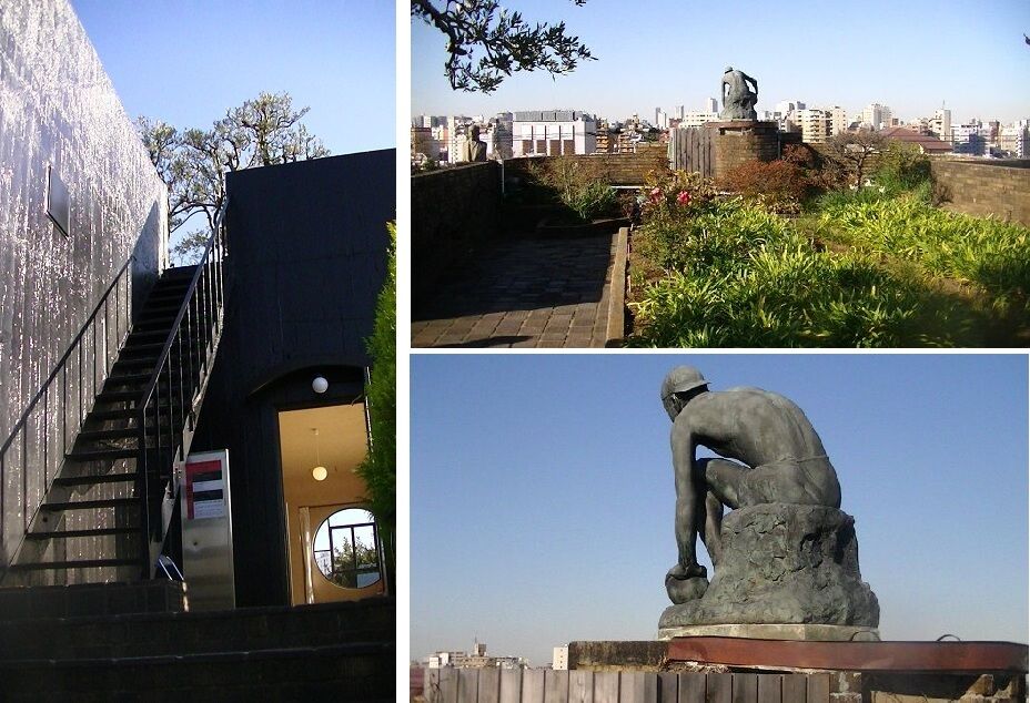 建物自体も国の有形文化財に登録されています。昭和10年(1935)に完成したそうですが、アトリエ部分のおそろしく高い天井、茶室まで構えた純和風の居住空間、4階にあたる屋上に造られた庭園など、興味深く拝見しました。同じ区域と言っていい光太郎のアトリエが、昭和20年(1945)の空襲で灰燼に帰したのが、返す返すも残念です。
