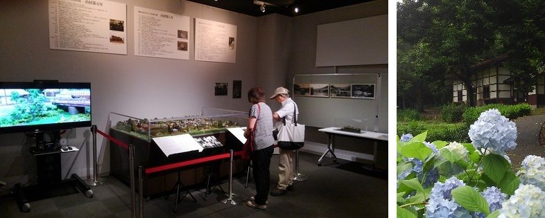 合間に隣接する高村山荘周辺を散策。東北北部はまだ梅雨明けして居らず、13日(金)は雨模様でした。関東ではとっくに枯れて朽ちているアジサイが、こちらではちょうど見頃でした(右上)。背景は、昭和20年(1945)から27年(1952)にかけ、光太郎が蟄居生活を送った山小屋(高村山荘)です。