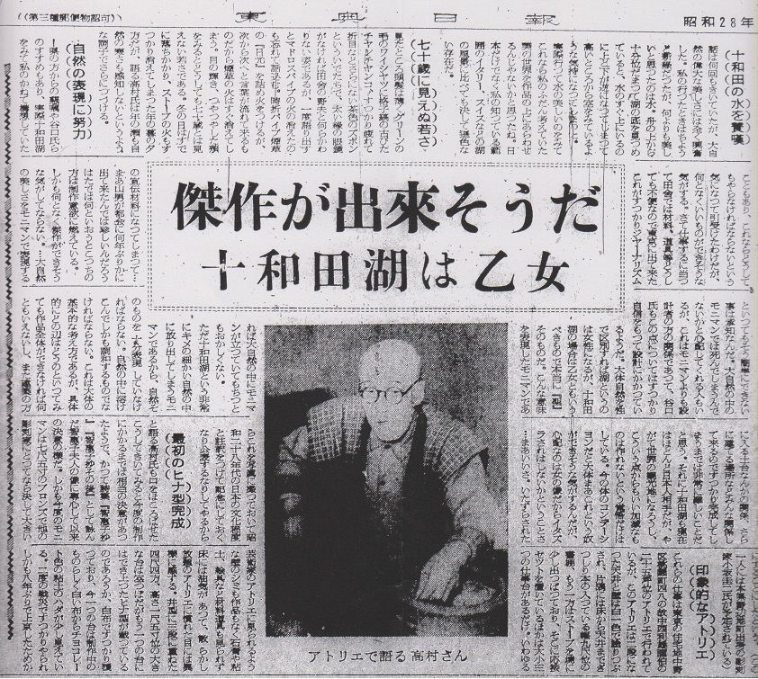昭和28年(1953)の元日、光太郎数え71歳となりました。光太郎の命の炎もあと3年と少しです。おそらくそういう自覚があったものと思われ、この時期に手がけていた生涯最後の大作「十和田湖畔の裸婦群像(通称・乙女の像)」は、異例の速さで完成にこぎつけます。