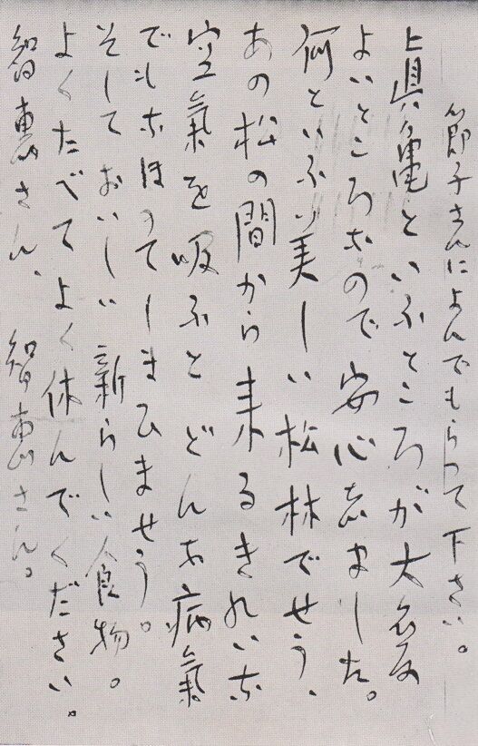 チエ子は病勢ますます募るので知人の周旋で品川のゼームス坂病院といふ病院へ先月末入院させました、実に可哀想でありません、其後小生家事整理に日を送つてゐますがさびしさ極まりありません。