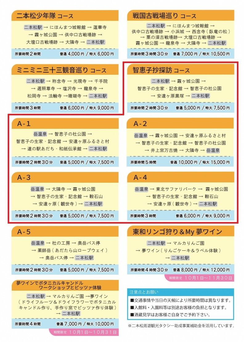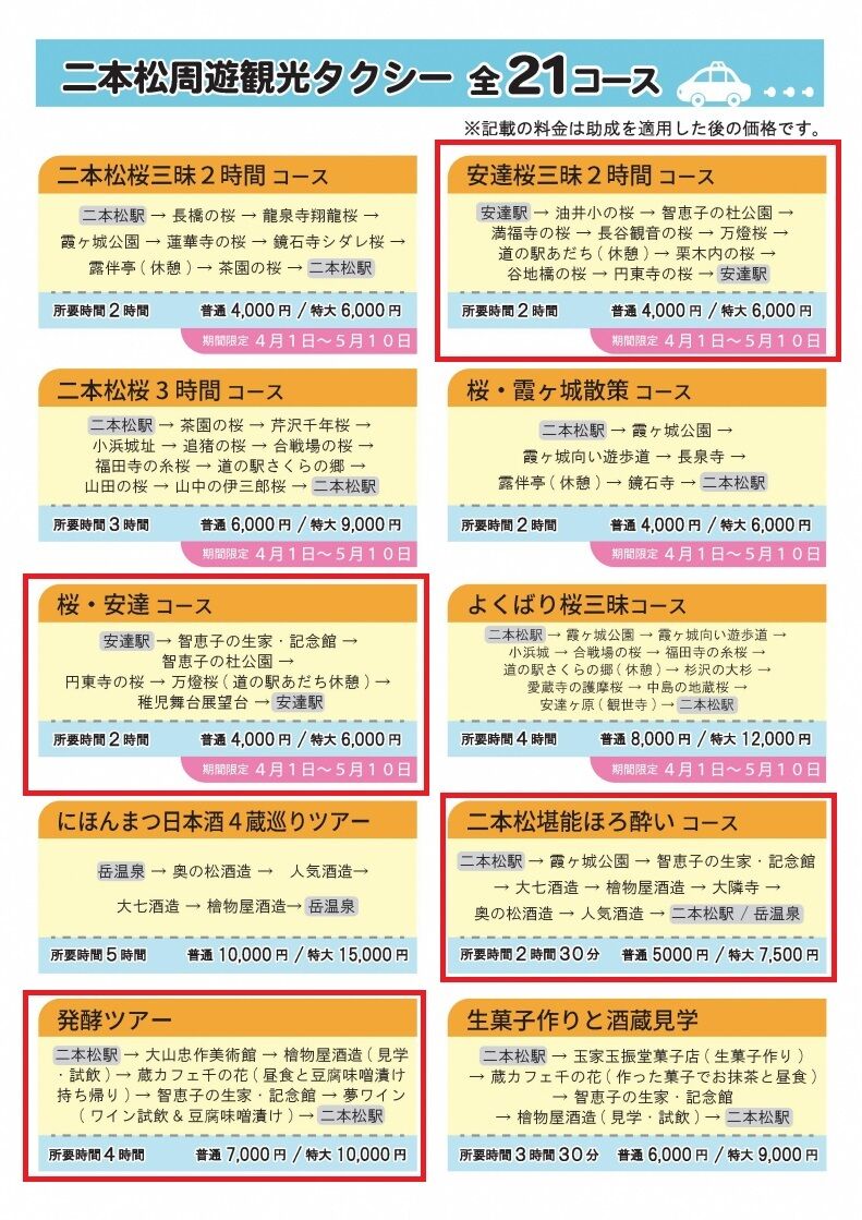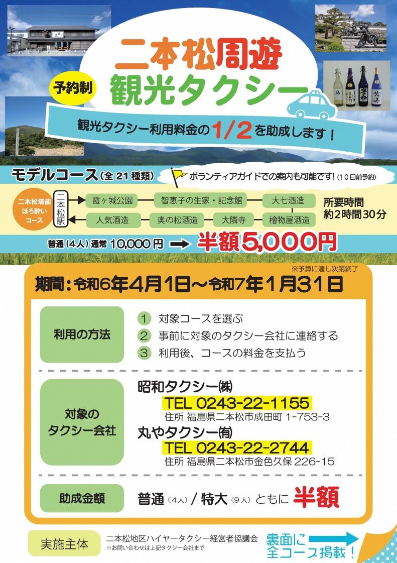 「二本松周遊観光タクシー」でお得に観光名所を巡りませんか?