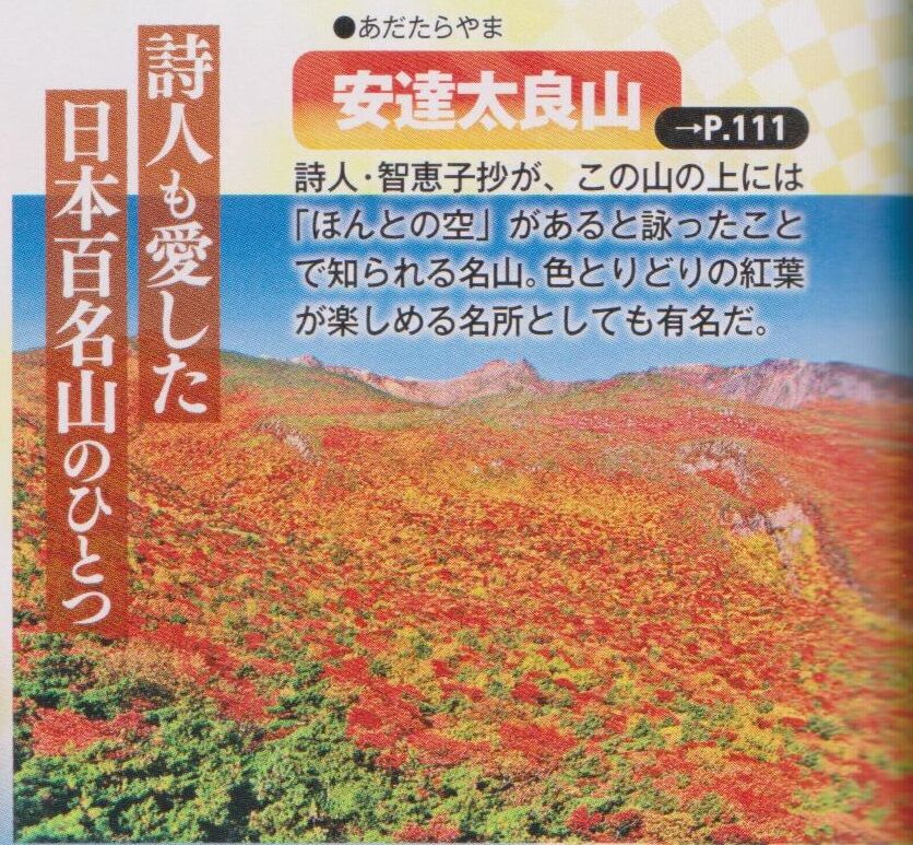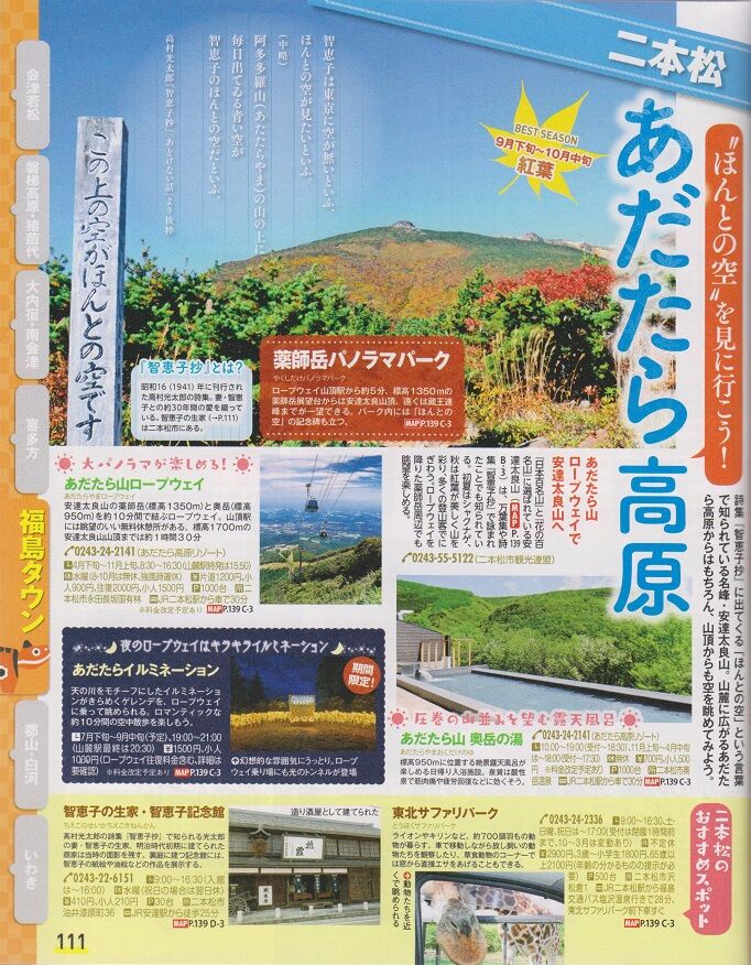 福島市を中心とした中通りの「福島エリア」中に、安達太良山や智恵子生家などが取り上げられています。