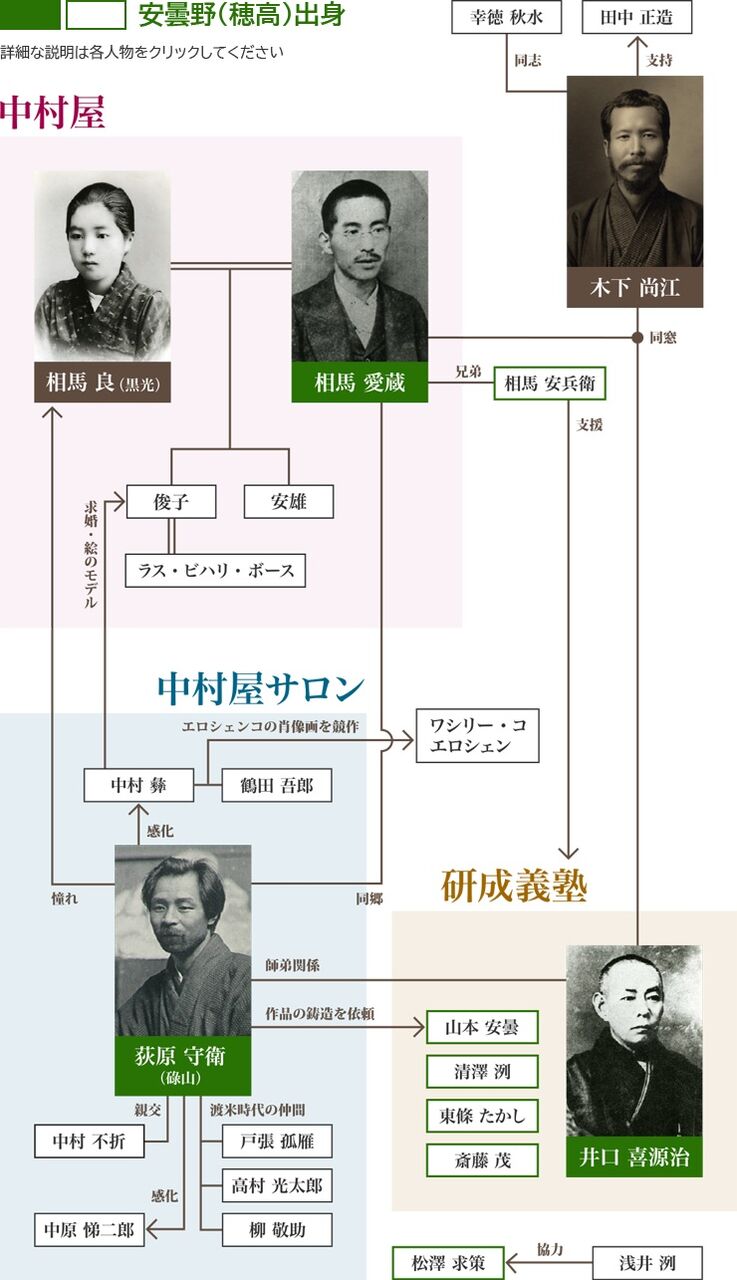 相馬愛蔵(そうま・あいぞう、1870〜1954年) 安曇野出身の社会事業家、実業家。養蚕家を経て、東京でパン屋「中村屋」を創業。文化・芸術活動も支援。