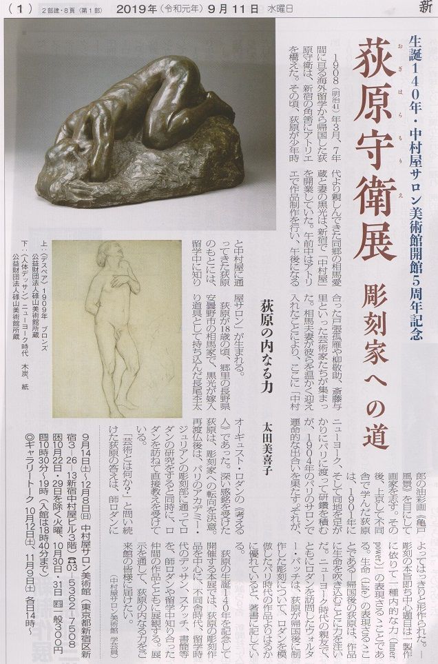 「没後90年記念 岸田劉生展」会場の東京ステーションギャラリーさんをあとに、新宿へ向かいました。次なる目的地は中村屋サロン美術館さん。こちらでは伺った9月14日(土)から、開館5周年記念「荻原守衛展 彫刻家への道」が開催中です。