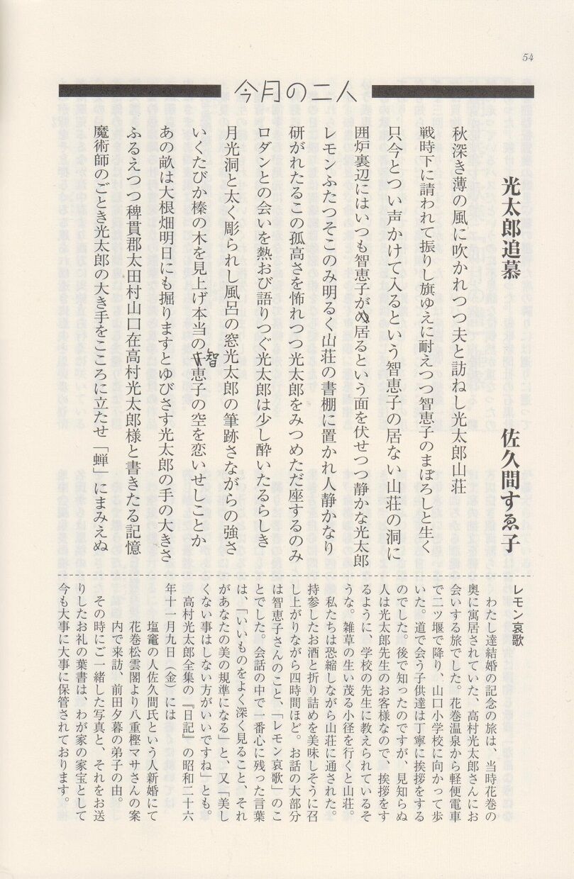 その際お聞きした内容を『高村光太郎研究』第28号(平成19年=2007)に「高村山荘訪問記 佐久間晟・すゑ子夫妻聞き書き」として掲載させていただきました。