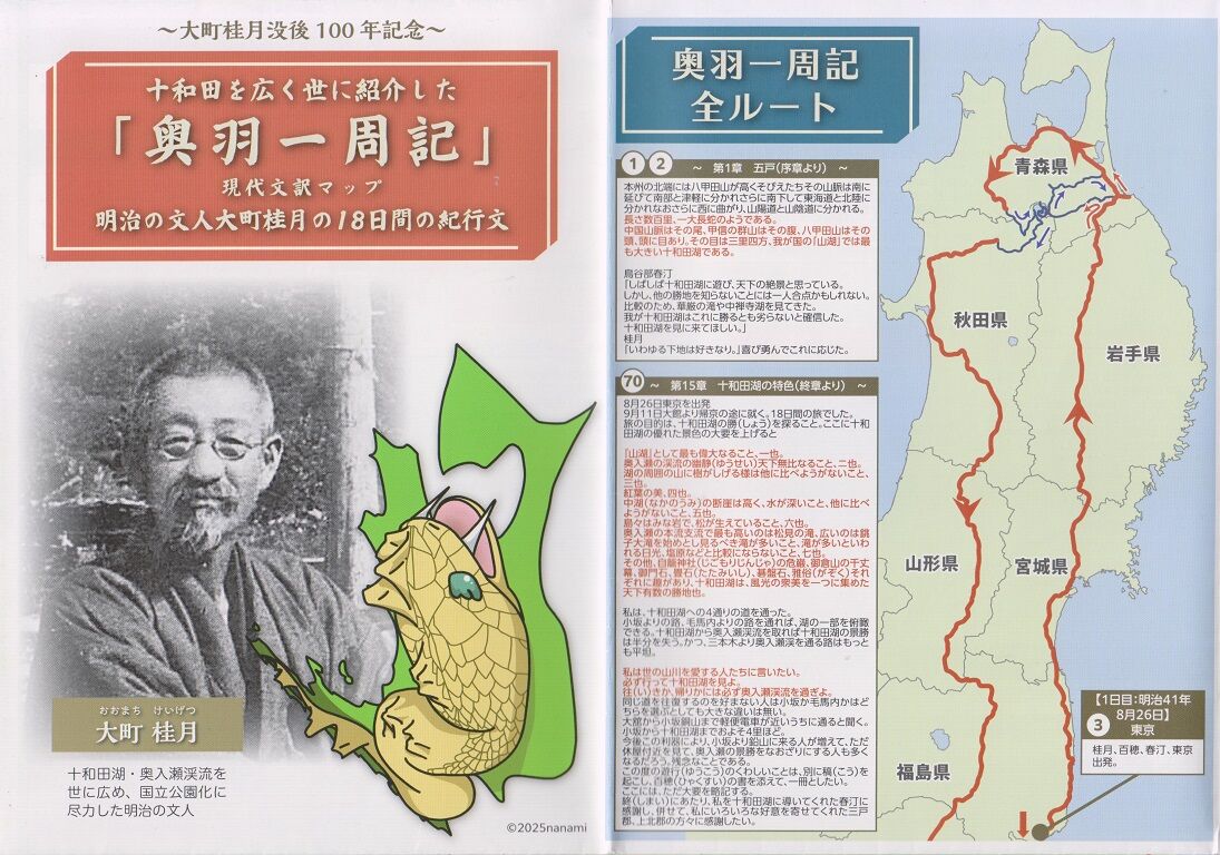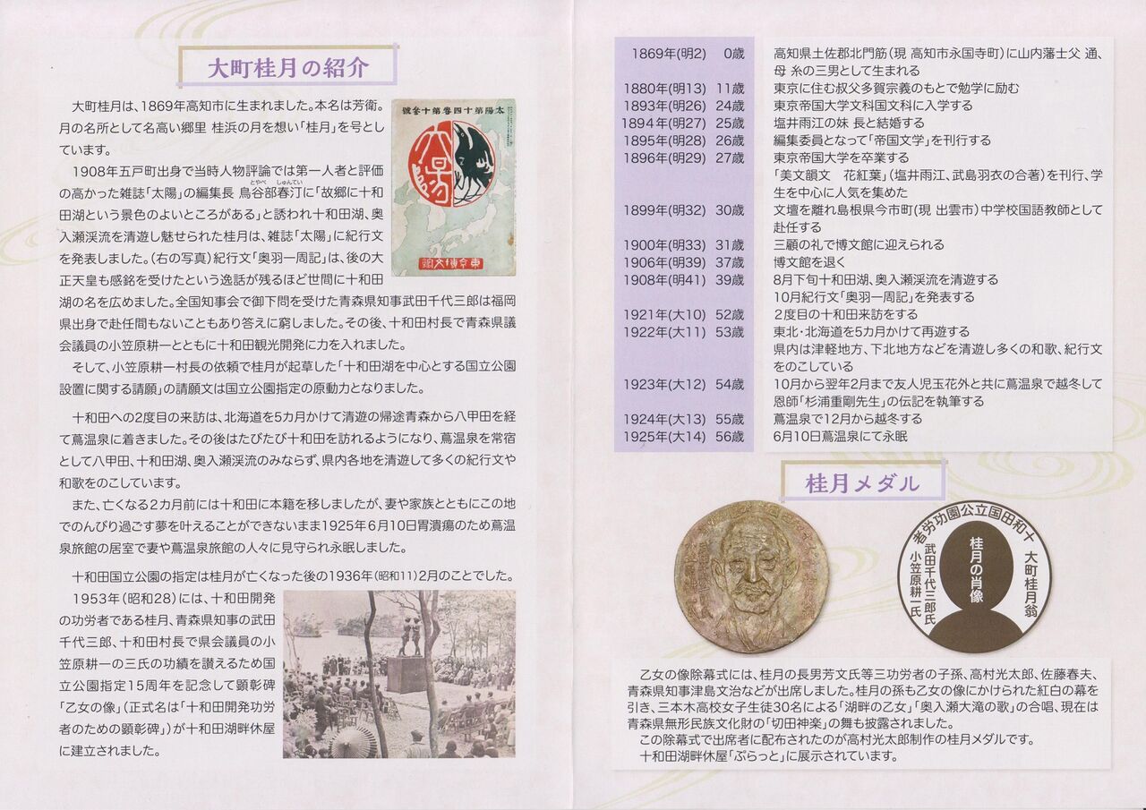 大町は、請願文を起草するなど十和田湖周辺の国立公園化に尽力した。「大町桂月を語る会」の谷川妙子事務局長は「美文で固められた請願文は大きな反響があった。筆の力で候補地に押し上げた」と説明した。