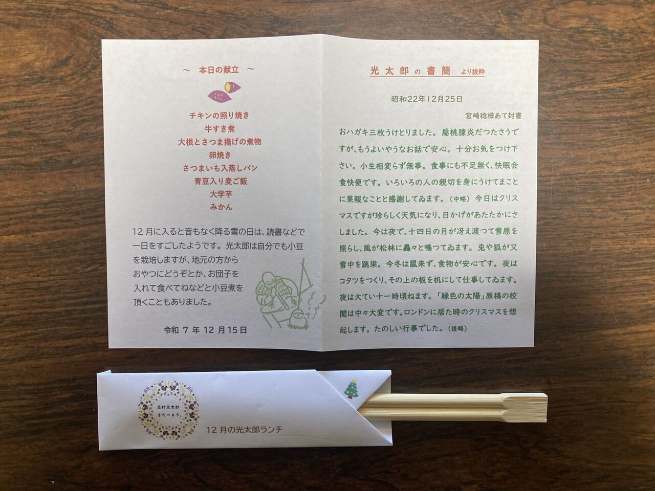 メニューの考案には、地元で主に食を通じて光太郎顕彰に当たられているやつかの森LLCさんが担当されています。そのやつかの森さんから送られてきた画像。