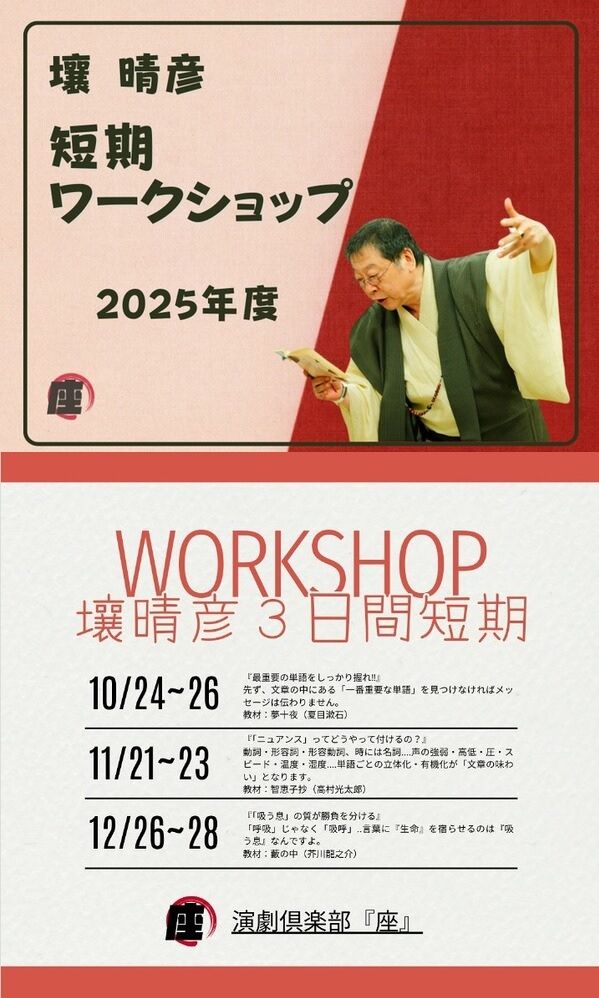 新宿区の演劇倶楽部『座』サロンさんで、「壤晴彦・演技/朗読短期ワークショップ 11月『「ニュアンス』ってどうやって付けるの?」が開催され、「智恵子抄」が教材として取り上げられました。