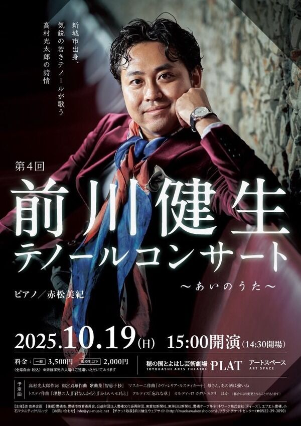 愛知県豊橋市の穂の国とよはし芸術劇場PLATさんで「第4回 前川健生テノールコンサート~あいのうた~」公演があり、別宮貞雄氏作曲の歌曲集「智恵子抄」が演奏されました。