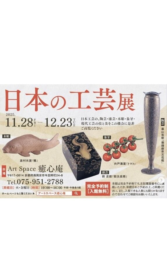 京都府長岡京市のArt Space癒心庵さんで「日本の工芸展」が開催され、光雲木彫「鯉」が展示されました。