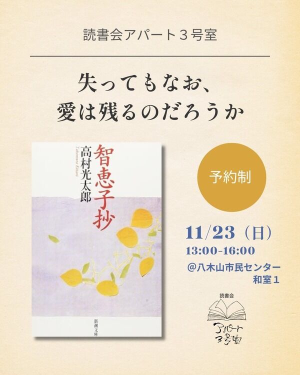 仙台市の八木山市民センターさんで「読書会アパート3号室 11月読書会『智恵子抄』」が開催されました。