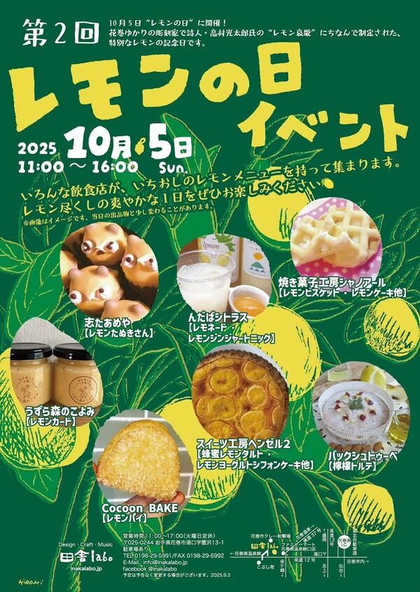 岩手県花巻市の田舎laboさんで「第2回 レモンの日イベント」が行われ、近隣の菓子店等8店がレモンを使った洋菓子などの販売を行いました。