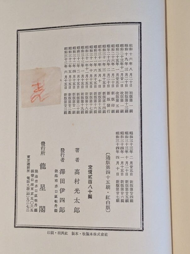 昭和34年(1959)4月10日 龍星閣 高村光太郎著