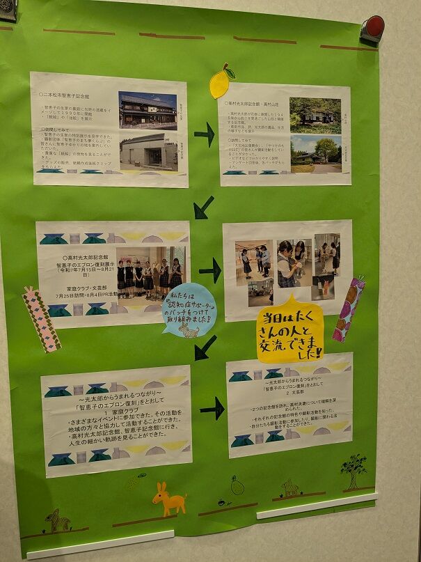 一昨年に同じこの場で初披露され、その後、二本松の智恵子記念館さん、花巻高村光太郎記念館さんなどでも展示された、家庭クラブさんによる「智恵子のエプロン」。