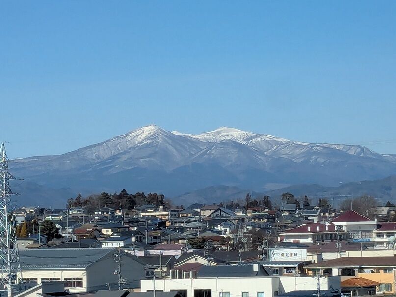 2月20日(金)、夕方までに着けばいいので、いつもより遅めの東北新幹線で北へ。途中、智恵子の故郷・福島二本松を通っていきますが、智恵子のソウルマウンテン・安達太良山の山の上には智恵子の「ほんとの空」が広がっていました。