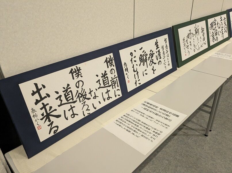 先週まで、高村光太郎記念館さんロビーで展示されていた、授業の芸術書道を選択されていた生徒さんたちが書かれた光太郎詩文の書。
