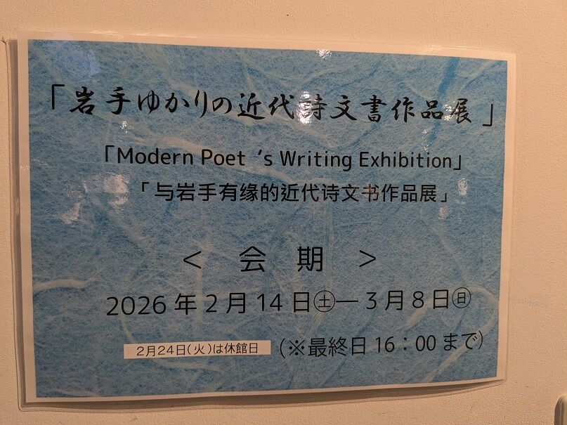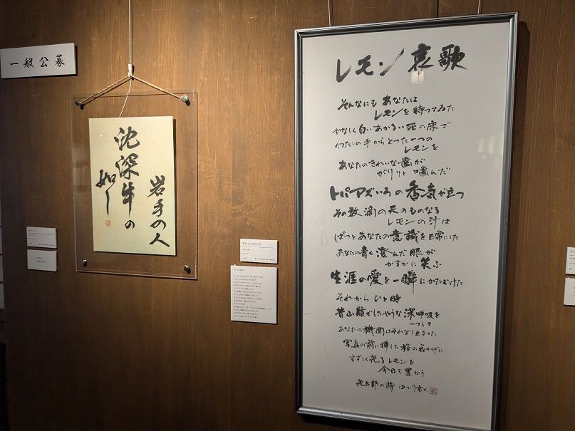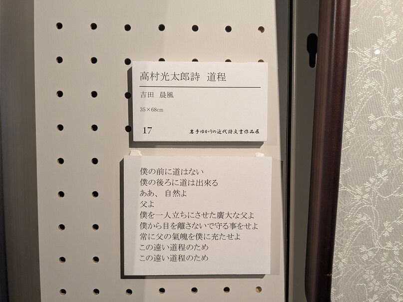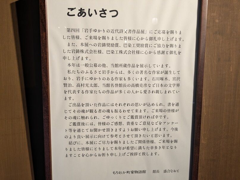 盛岡での目的地は鉈屋町のもりおか町家物語館さん。こちらで「岩手ゆかりの近代詩文書作品展」が開催され、光太郎詩の一節等を書かれた書が複数出ているという情報を直前に得たため、急遽向かった次第です。