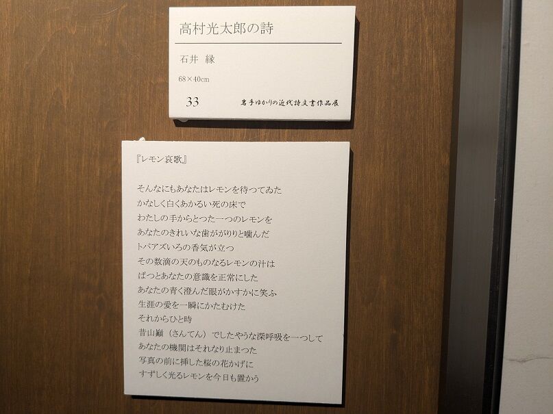左は詩「岩手の人」のよく引用される一節。右が『智恵子抄』中の絶唱「レモン哀歌」(昭和14年=1939)全文。