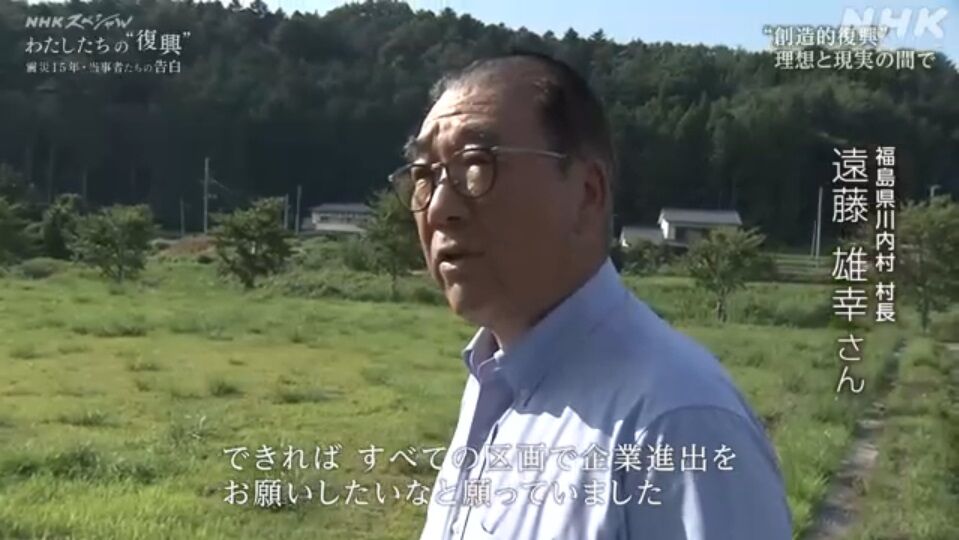 東日本大震災から15年が経ち、同村の置かれている現状、非常に厳しいものがあります。今年の3.11当日にNHKさんで放映された「NHKスペシャル わたしたちの“復興” 震災15年・当事者たちの告白」を拝見し、「いやー、これほどか」と改めて思いました。