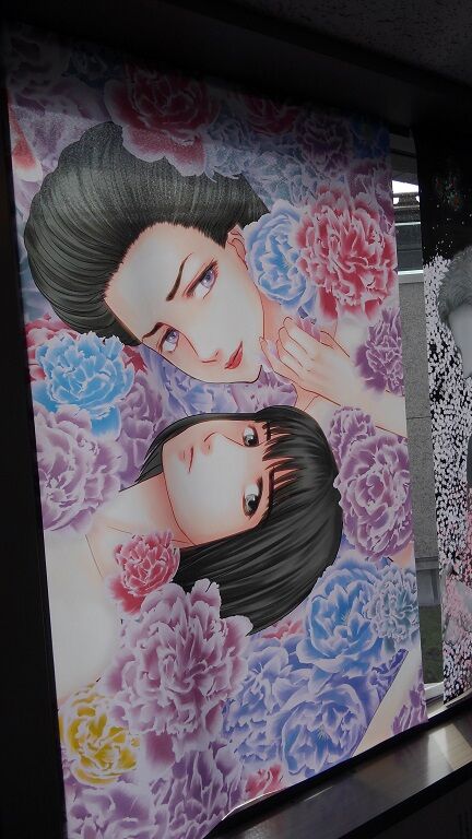 左上は窓に提げられたタペストリー。第4巻の表紙原画を元にしたもので、アッコさん(与謝野晶子)とチエコ(智恵子)があしらわれています。これは欲しい、と思いました。