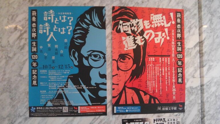 前橋市の前橋文学館さん、高崎市の群馬県立土屋文明記念文学館さんをハシゴ。現在、両館で共同企画展「萩原恭次郎生誕120年記念展」を開催中です。