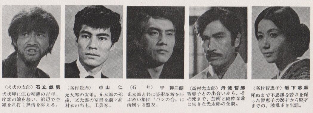 中山さん、昭和42年(1967)公開の松竹映画「智恵子抄」(岩下志麻さん主演)にご出演なさっていました。光太郎実弟にして、家督相続を放棄した光太郎に代わって高村家を嗣ぎ、のちに鋳金分野の人間国宝となる豊周(とよちか)の役でした。
