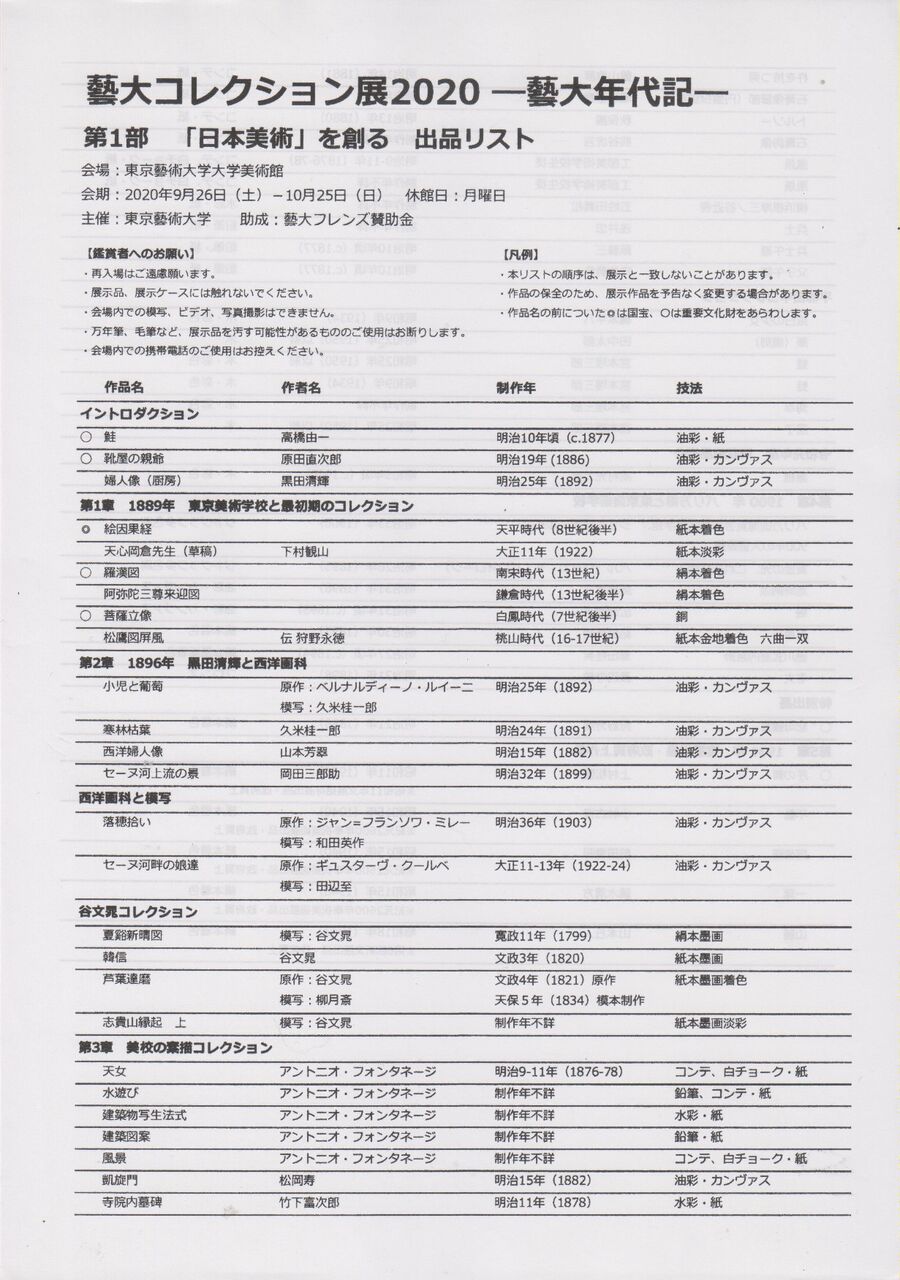 一昨日から昨日にかけ、1泊2日で岩手花巻に行っておりましたが、その前に上野の東京藝術大学大学美術館さんで「藝大コレクション展2020 藝大年代記(クロニクル)」を拝見してから行きました。