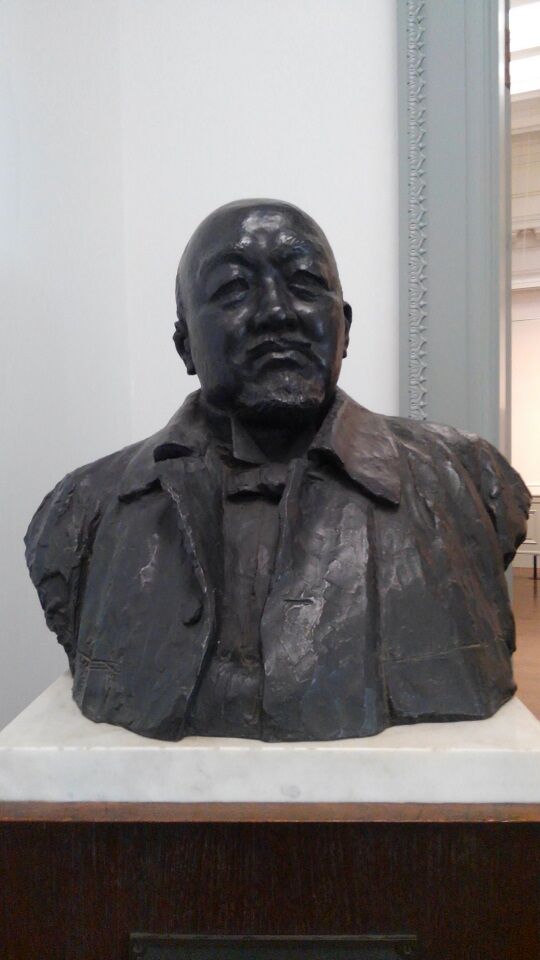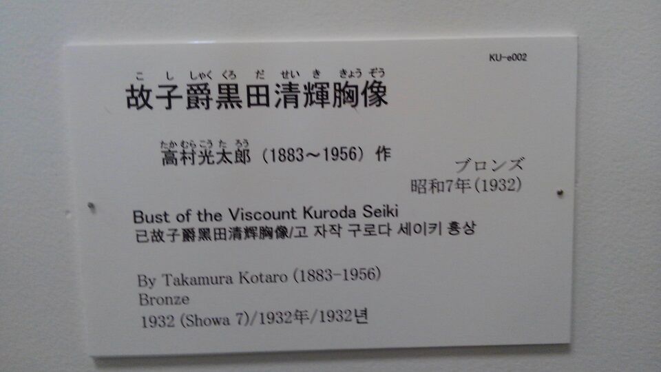まだ時間がありましたので、すぐ近くの黒田記念館さんへ。現在、特別室は閉鎖中で、「湖畔」などの大作は見られませんが、光太郎作の「黒田清輝胸像」(昭和7年=1932)は常設です。