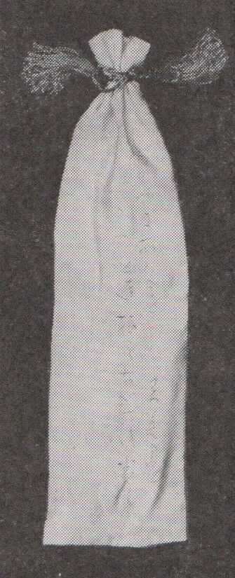 作品を収める絹製と思われる袋も一緒に展示されていました。こうしたものの通例で、おそらく智恵子が縫ったものでしょう。そしてこれも通例で、光太郎詠歌が墨書でしたためられています。曰く、