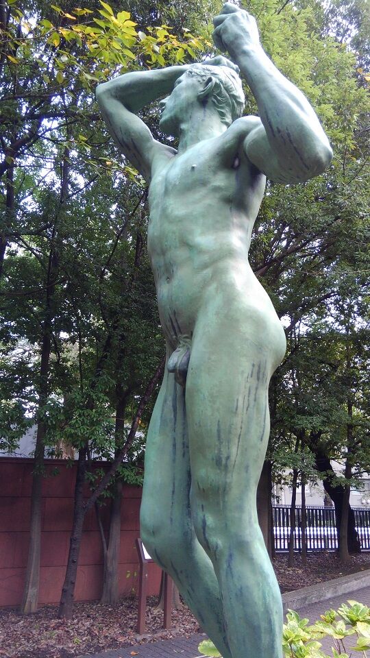陳列館の入り口には、ロダンの出世作「青銅時代」(明治10年=1877)。ここにこれがあるということは、当方、寡聞にして存じませんでした。