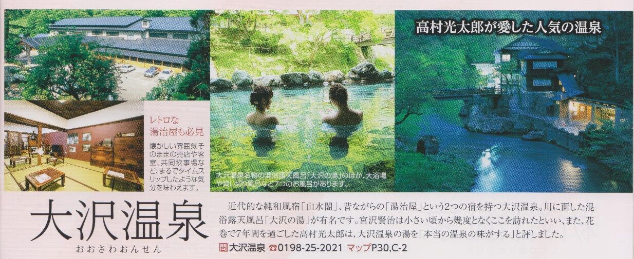 光太郎第二の故郷ともいうべき岩手花巻にあり、光太郎や宮沢賢治もたびたび宿泊したゆかりの宿、大沢温泉さん。当方も花巻に宿泊する際は、真っ先にここに予約。取れなかった場合などに他を当たるという習慣になっています。