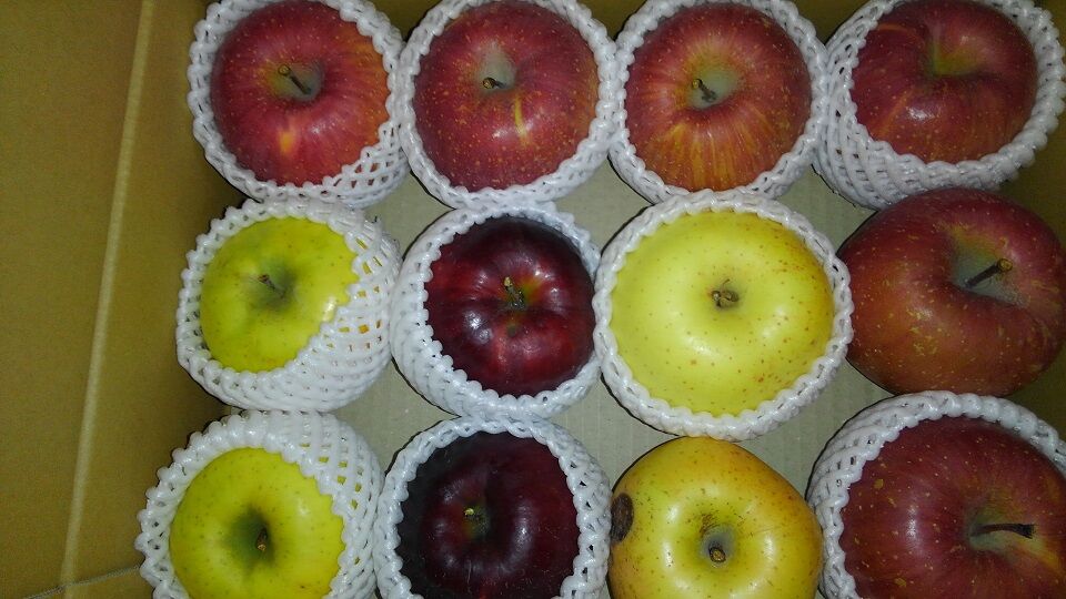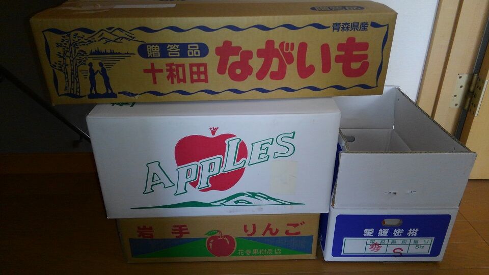 積んである一番下が阿部さんのリンゴ、その上が石鳥谷地区産のリンゴ、さらに昨日落手した十和田産の長芋(箱に光太郎最後の大作「十和田湖畔の裸婦群像(通称・乙女の像)」が印刷されています)、右は愛媛から届いたミカンです。