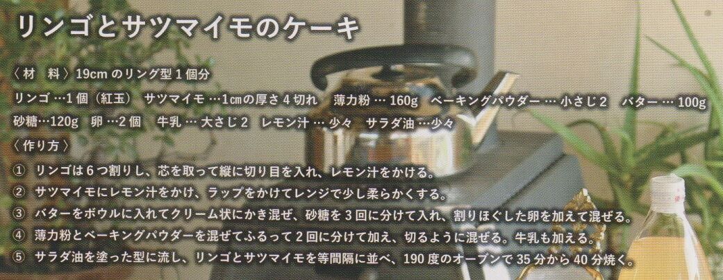 平成29年(2017)の以来、花巻高村光太郎記念館さんのご協力で「光太郎レシピ」という連載が為されていますが、今号は「リンゴとサツマイモのケーキ」。