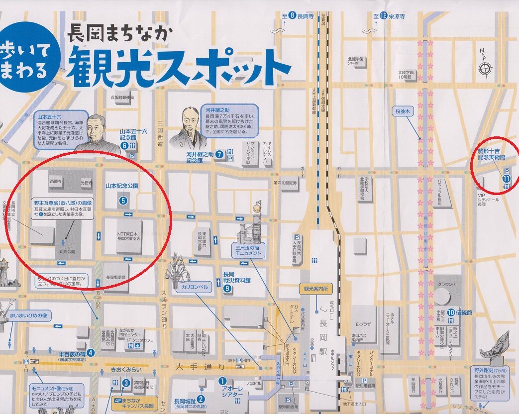 ちょうどその一角に、山本五十六記念館や、山本記念公園。山本五十六もこの地の出身で、駒形の兄は山本と同級だったそうです。美術館にも山本の書が複数展示されていました。ちなみに光太郎、戦時中の翼賛詩「提督戦死」(昭和18年=1943)、「山本元帥国葬」(同)などで山本を謳っています。