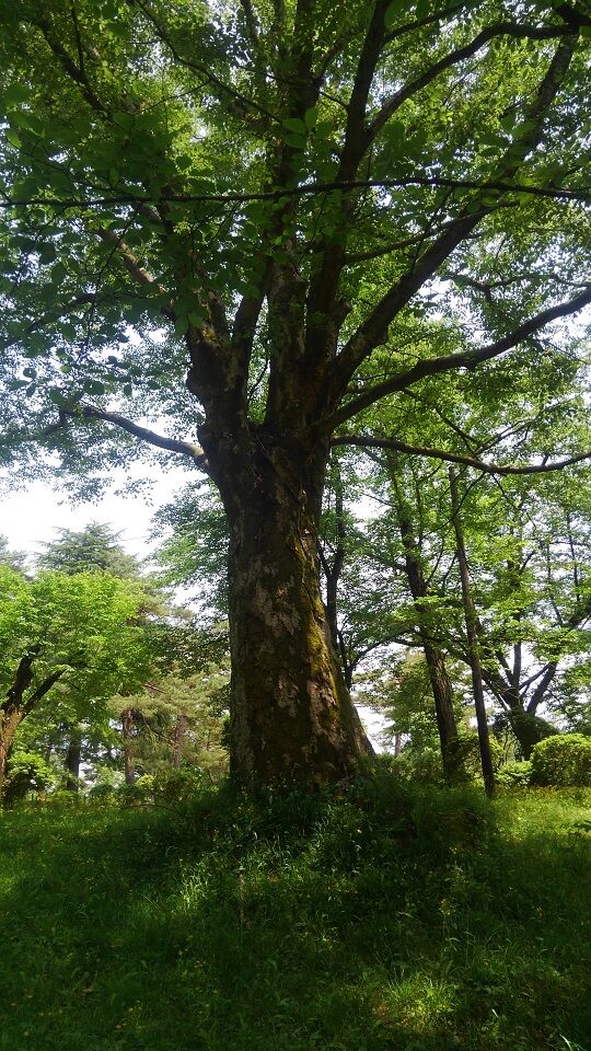 光太郎に「悠久山の一本欅」という随筆があります。2度目の長岡来訪のあとに書かれたもので、芝生広場のあたりで見事な欅の大木を見て、感動したという内容です。非常に目立つ独立樹だというので、探してみたのですが、それらしき木は見つかりませんでした。欅(と思われる木)は何本かあったのですが、光太郎の記述とは合いません。