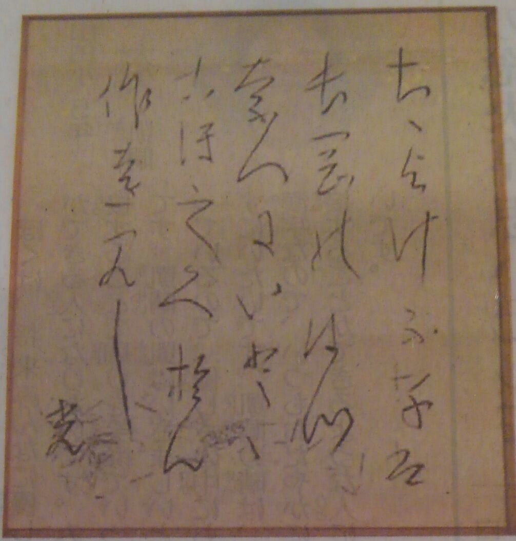 書き下すと、「ちちよけふ子は長岡のはつなつにいとどこほしくおん作を見し」。同作は『高村光太郎全集』第11巻に掲載されていますが、そちらでは「父」「初夏」が漢字表記です。お話しさせていただいた同館学芸員さんによると、「風羅会」メンバーそれぞれに色紙を贈ったというので、表記の異同があったのでしょう。