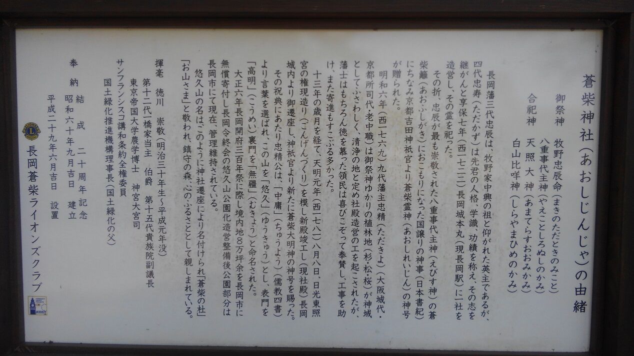 「高村光雲遺作木彫展観」の2年後、長岡を再訪した折の撮影です。場所はキャプションのとおり、長岡市郊外の悠久山公園にある蒼柴(あおし)神社さん。