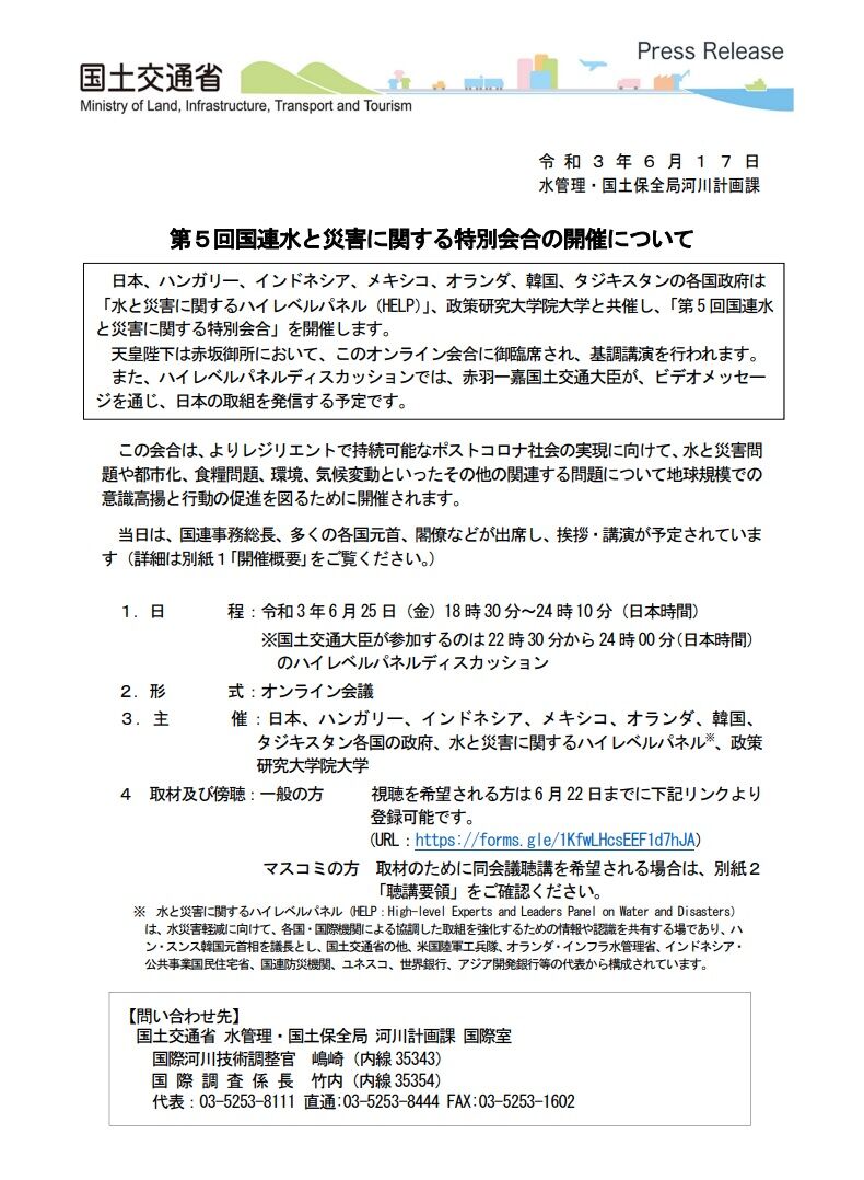 「第5回国連水と災害に関する特別会合」。調べてみましたところ、以下のような要項でした。