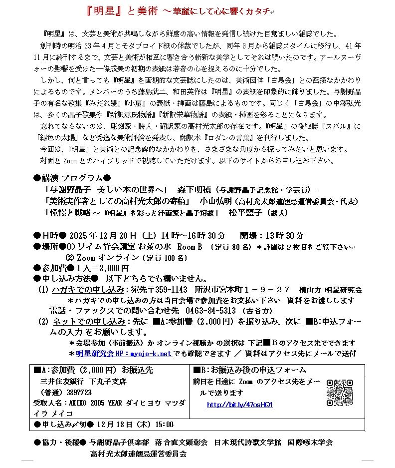 論じられているのは、ちょうど光太郎が明治39年(1906)から同42年(1909)の3年半に亘る欧米留学から帰朝し、実際に肌で触れてきた新しい芸術を日本に根づかせようと、画廊・琅玕洞やヒユウザン会(のちフユウザン会)などの活動に取り組んでいた時期です。そこで光太郎の名はほぼ初めから終わりまで出ずっぱり。章の題名としては「第三章 帰朝する新進洋画家――パイオニアとしての有島生馬・齋藤與里・高村光太郎」のみですが、他の全ての章にその名が刻まれています。